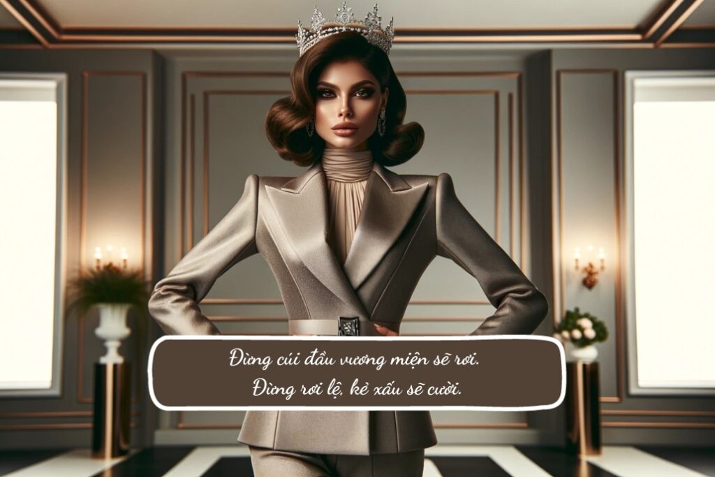 - Đừng cúi đầu vương miện sẽ rơi. Đừng rơi lệ, kẻ xấu sẽ cười.