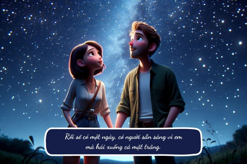 - Rồi sẽ có một ngày, có người sẵn sàng vì em mà hái xuống cả mặt trăng.