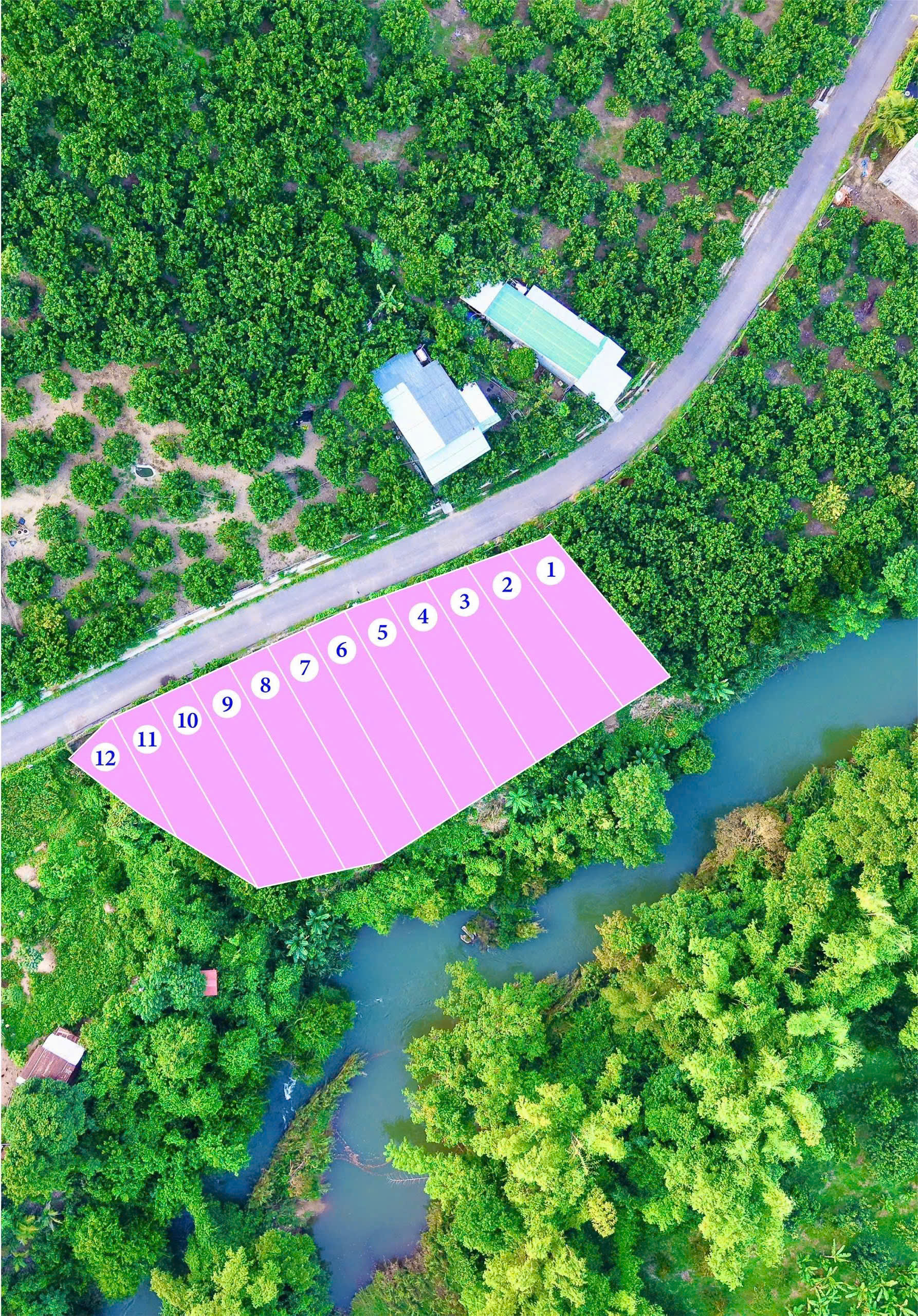 • Thiên nhiên trong lành: Trên đất có sẵn cây ăn trái, mang lại không gian xanh mát. Đặc biệt, mặt sau lô đất giáp sông, tạo nên view cảnh quan tuyệt đẹp, không khí thoáng đãng và mát mẻ quanh năm.